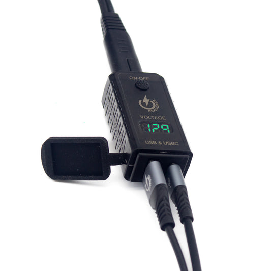 SAE to USBC & USB power Adapter with Switched on off Digital Voltage Display